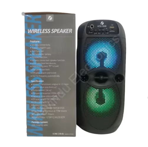 اسپیکر بلوتوثی قابل حمل KTX-1526 یک انتخاب عالی برای افرادی است که به دنبال یک اسپیکر با صدایی شفاف و قدرتمند هستند. این اسپیکر با دو درایور 4 اینچی، صدایی رسا و پربیس را ارائه میدهد که میتواند فضای اطراف شما را پر کند. همچنین، این اسپیکر از قابلیت حمل بالایی برخوردار است و به راحتی میتوانید آن را با خود به هر مکانی ببرید.