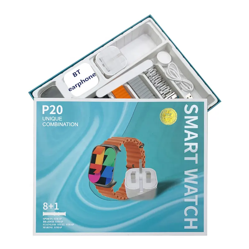پک ساعت هوشمند مدل P20 یک محصول کامل و مقرون به صرفه است که تمام نیازهای شما را برای یک ساعت هوشمند برآورده می کند. این پک شامل یک ساعت هوشمند با صفحه نمایش بزرگ، 8 بند مختلف و یک شارژر است.